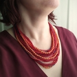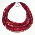 A luxurious necklace in bright and dark reds, with golden and iridescent accents. Perfect if you want a red accent to your outfit. The big red beads look like berries. It will look good paired with a dukach, a pendant, a beaded choker or other necklaces.