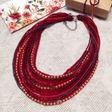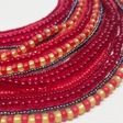 Розкішне намисто у яскравих і темних червоних кольорах, з золотими й райдужними акцентами. Відмінно підійде якщо ви хочете червоний акцент до одягу. Червоні намистинки крупного бісеру виглядають наче ягідки. Гарно виглядатиме у парі із дукачем, кулоном, силянкою чи іншими намистами.