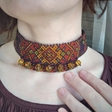 A luxurious wide sylanka (ukrainian beaded necklace) in dark colors, inspired by the pattern of ancient Western-Ukrainian necklace. The colors are like on a dark old carpet. In dark evening lighting, the choker looks like it's vintage, darkened over time. During the day, theshades are revealed in all their beauty and play with colors. The shiny golden and green ornament looks very nice on the bend. In the central part, the necklace is complemented by a fringe of beaded loops and Czech glass faceted fire-polished beads. This beaded necklace should be worn like a choker - close to the neck. Its length is 34 cm + 4 cm with chain; can be extended additionally with a chain to order. It is perfect not only for purple clothes, but also for dark red and greenish shades.